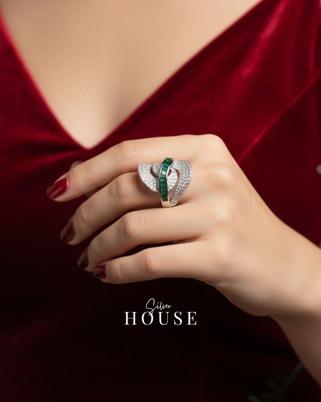 Make an unforgettable entrance with our 925 Silver Cocktail Ring with Green Emerald Stones, crafted to deliver bold glamour and classy sophistication in every glance. Designed for women who love standout jewelry, this statement ring features radiant emerald-green stones arranged to create a luxurious, attention-grabbing sparkle.